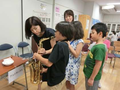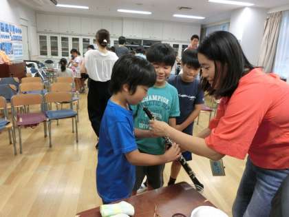 7月14日(金)に4年生は木管楽器体験をしました。木村さんをはじめおたまじゃくしの皆さんの協力で、木管楽器の音の出る仕組みを知りました。フルート、クラリネット、オーボエ、アルトサックスの体験をして、音を出す難しさも知りました。