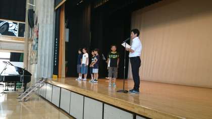 7月20日(木)、1学期の終業式が行われました。校長先生の話や代表児童の言葉の後、今学期あいさつを頑張った児童(あいさつマスター)が表彰されました。保護者・地域の皆様のご協力ありがとうございました。2学期もよろしくお願いいたします。