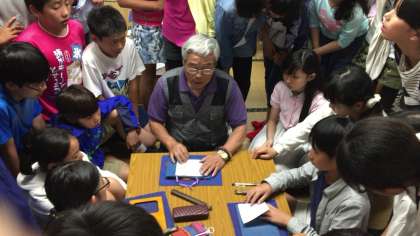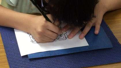 昼食後、同じ部屋で木彫リ体験をしました。職人の方にお手本を見せていただき、いよいよ日光木彫リに挑戦です。