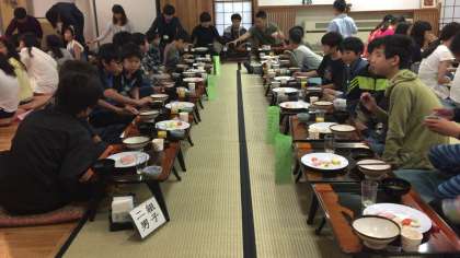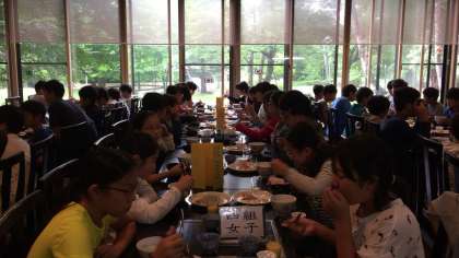 今日はハイキングがあるので、しっかり食べましょうね。このあと源泉までお散歩に行きます。