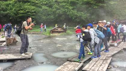 ここは温泉が湧き出ているところです。このあとバスに乗って中禅寺湖まで行きます。