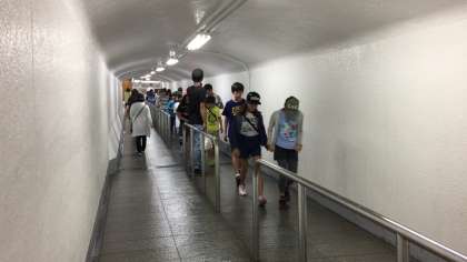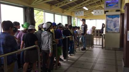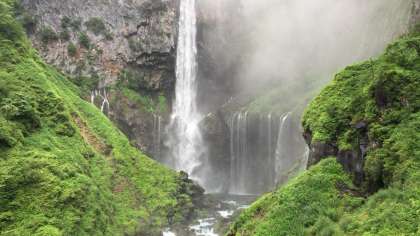 これから華厳の滝見学です。エレベーターで100m下ります。少し霧がかかっています。