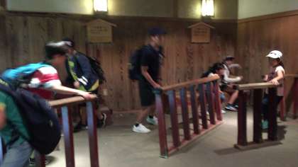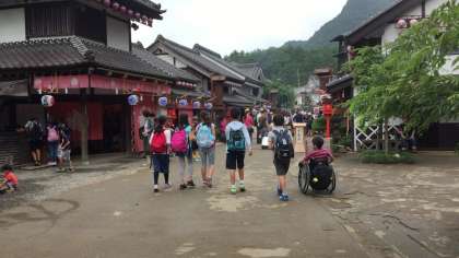 日光江戸村に到着。いつもは猛烈な暑さですが、今日は過ごしやすい天気でした。中はグループで回ります。