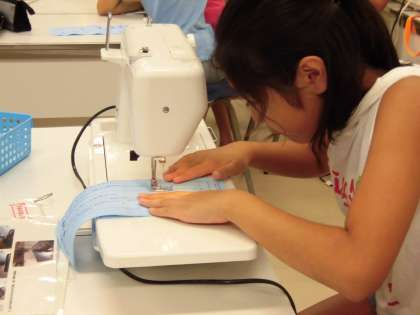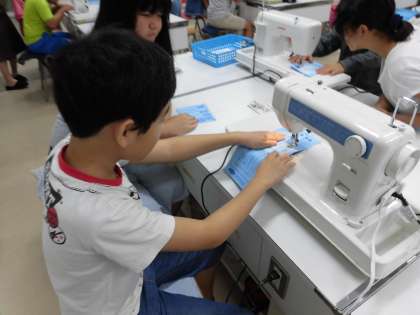 初めて触るミシンに興奮気味の子供たち。