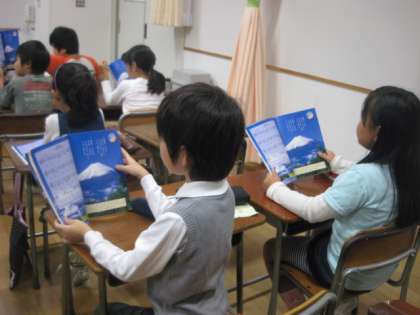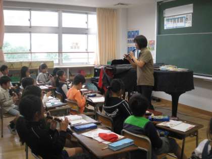 本校の2年生と3年生の音楽は、鹿島先生が教えています。3年生の授業でした。「ふじさん」の曲を歌っていましした。この曲は、日本でずっと歌いづづけられている文部省唱歌です。日本の文化を大切にしていきたいですね。また、リコーダーの練習をしてがんばっていました。