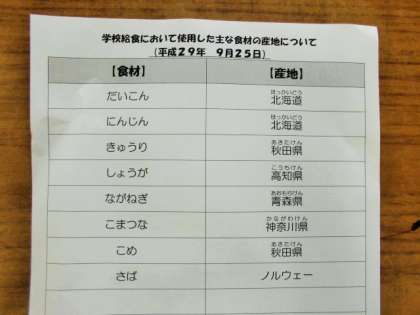 メモは、魚のごまだれかけに使われている『ごま』についてです。今日のこのごまだれには、3種類のごまを使っています。それは、『粒ごま』、『すりごま』『ねりごま』です。なぜ3つもの種類のごまを使っているかというと、それぞれのごまが別々の役割を果たし、合わせることでよりおいしくなるからです。その役割とは、粒ごまはプチプチとした食感、すりごまは香り、ねりごまは濃厚な味とコクを出すことです。ちなみに、ごまをすったりつぶしたりすることで、栄養もとりやすくなります。ぜひ、よく噛んで食べて3種類のごまのおいしさを感じてみてください。