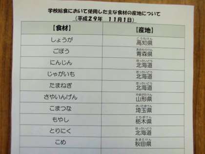 11月になりました。今日は11月の給食目標についてお話しします。今月の給食目標は、『色々な食べ物について学ぼう』です。毎日のランチ通信や毎月の給食だよりでも食べ物の様々な情報をお知らせしていきたいと思います。みなさんも、今日の給食には、どんな食べ物が使われているのか、その食べ物は、どこでとれたもので、どんな味や香り、食感がするのかなど、色々な視点から食べ物について興味をもってほしいなと思います。