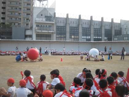 今日の全校練習は、1昨日雨でできなかったことを中心に行いました。また、大玉送りをみんなで力を合わせて行いました。大玉送りをしながら、運動会に向けての意欲を高めました。