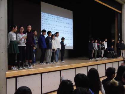 集会委員会主催で勤労感謝集会が実施されました。普段お世話になっている、学校運営委員、PTA役員、おやじの会、TAPの皆様をお招きし、感謝の気持ちをお伝えしました。ご多用の中、ありがとうございます。これからも塚戸小の子どもたちをよろしくお願いします。