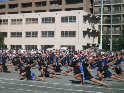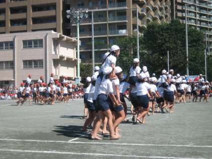 5,6年生は、「100m走」。中学校の校庭を全速力で駆けぬけました。「塚戸ソーラン」。伝統の塚戸小のソーラン節と組体操を引き継いで、見事に成功させました。「騎馬戦」。迫力ある戦いはいかがだったでしょうか。