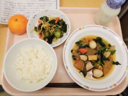 今日は、ごはん、牛乳、いかと大根のうま煮、かりじゃこサラダ、みかんです。