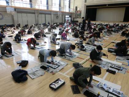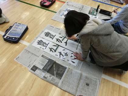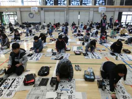 毎年恒例、体育館での書き初め!