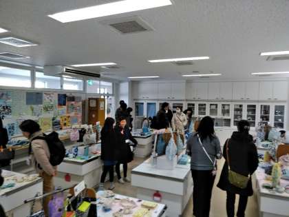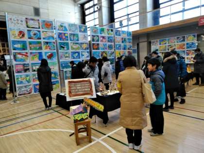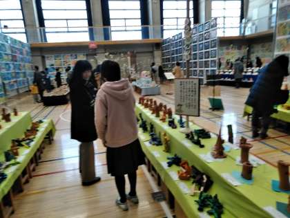 学習発表会(展覧会)2日目です。本日は、保護者・地域の皆様に作品をご覧いただいています。6年生がミニ学芸員として奮闘中です。大勢のお客様。「だれに声をかけようか・・・」少し、勇気も必要ですね。無事に説明を終えた子どもたちのほっとした顔に達成感を見ることができました。