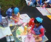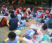 12時、お弁当の時間になりました。いただきまーす。なんと、同じ区立幼稚園の砧幼稚園と桜丘幼稚園と一緒でした。