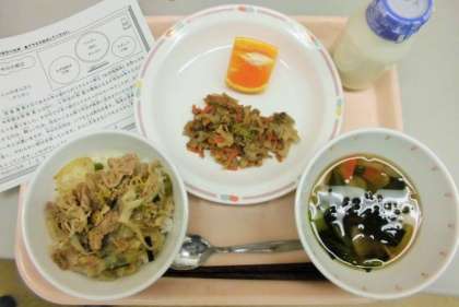 今日のねぎ塩豚丼は、完食賞第2位である6年4組からのリクエスト献立です。