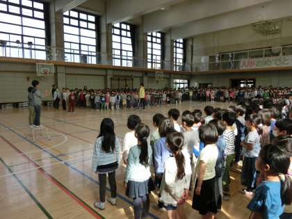 今日の朝の時間は音楽集会でした。明後日土曜日に行われる「1年生を迎える会」へ向けて2年生〜6年生の児童が、音楽の吉田先生のご指導のもと「やあ!」と「塚戸小学校校歌」の合唱練習をしました。指揮の6年生もとっても上手で、土曜日がとっても楽しみです!