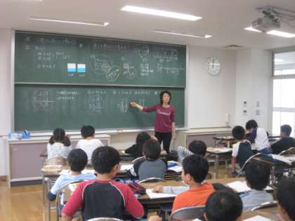 算数の少人数授業は、4年生以上が行っています。佐藤教諭と講師の鈴木教諭が受け持っています。少ない人数なので、きめ細かい指導ができます。子どもたちの理解度が高まっています。