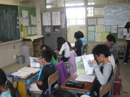 国語の授業でした。子どもたちは、「つけたし、つけたし」と言って、よく意見をいいます。主人公の気持ちを文章に即して考えます。よく発言できる子どもたちです。