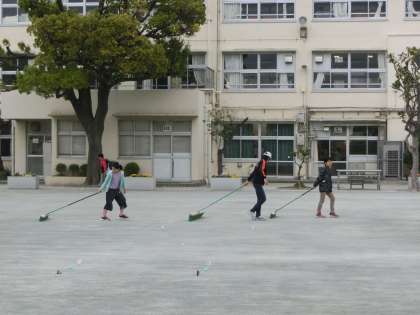 もう一枚の写真は体育委員会の児童です。広いグランドを丁寧にブラシがけしてくれています。校庭を使いやすくするために頑張ってくれていて素晴らしいですね。