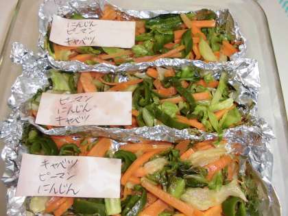 正解は、にんじん、ピーマン、キャベツの順番です。