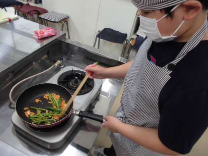 根菜から炒めることは、大人にとっては当たり前かもしれませんが、子どもたちにはそれも学習です。