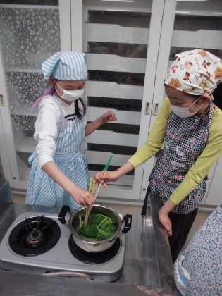 茹でた方がかさが減ることや、緑が鮮やかになることに気づく子がたくさんいました。
