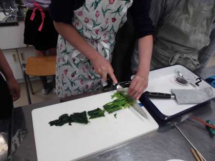前回と違い、包丁を使うことに緊張気味の子供たちもいましたが、安全に使うことができました。