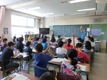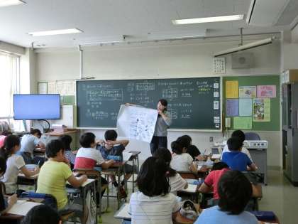 算数は、単位当たり量の学習をしていました。1あたりの考え方はとても難しく、またこれから速さの学習などにつながりとっても重要です。悩みながらも「分かった!」という声がたくさんあり、楽しく学習を進めていました。