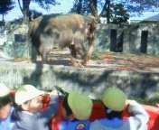 10時45分、ゾウの花子の前で、集合写真。花子は、63歳、日本にいるゾウの中では、最高齢です。花子について、先生に教えてもらっています。子どもたちは、真剣に見ていました。