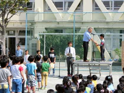 今週もスタートし、全校朝会がありました。今日は先日お伝えした、あいさつリーダーの任命式の続きです。前回は塚戸小学校の代表の6年生のあいさつリーダーを紹介しましたが、今回は2年生〜5年生の任命式です。代表の児童の名前が呼ばれると、元気に「はい!」と返事をしていました。さすがあいさつリーダーさん。返事もピカイチでした!あいさつの輪がこれからも広がっていくと、気持ちがよいですね!