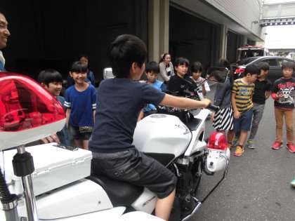 道場では交通課の方のお話を聞いたり、自分たちで事前に考えてきた質問に答えていただいたりしました。駐車場では、実際にパトカーや白バイに乗りながら、車両がどのような造りになっているのかを教えていただきました。