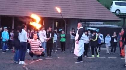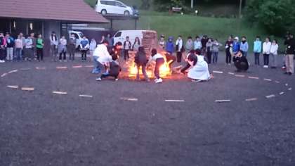 昼間に降った雨もやみ、念願のキャンプファイヤーが無事に開催されました。