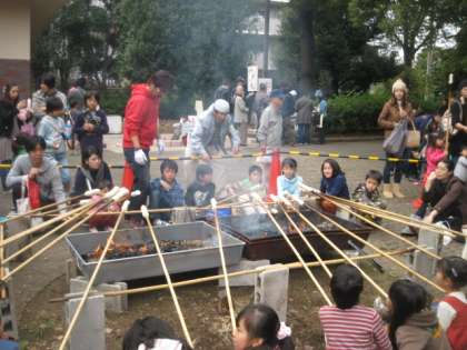 祖師谷公園でトライアングルフェスタが行われました。ぱるランド(上祖師谷ぱる児童館)、フィールドフェスティバル(上祖師谷まちづくりセンター)、祖師谷芸術祭(祖師谷国際交流会館)の3つのお祭りの総称です。塚戸小のおやじの会の皆様は、やきいもと遊ぼうパンに協力します。子どもたちも大勢来ていました。