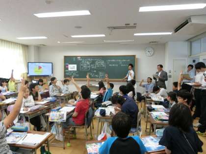 今日は世田谷区小学校教育研究会社会科部の研究授業がありました。5年3組のみんなは100名ほどのお客様がいらして緊張したと思いますが、とってもよく頑張りました。今日の学習は「沖縄県では、どのような観光業が盛んなのだろう。」という問いに対して調べたり、議論をしたりしました。沖縄県は自然を生かした観光業がたいへん盛んであること、一方で自然破壊が進んでしまっている問題点もあることを調べました。一番盛り上がったのは学習の後半「これからも沖縄県は、観光に力を入れていった方がよいのだろうか。」という発問に対して、自分の立場を決め活発に議論し合いました。見ている方もとても楽しくなる授業で、沖縄について主体的・対話的な深い学びができました。5年3組のみなさんお疲れさま!