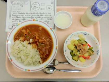 今日は、パセリライス、牛乳、ポークストロガノフ、ツナポテトサラダ、ホワイトゼリーです。