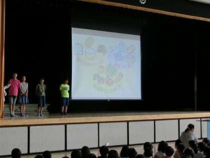 今日は、給食委員会さんによる食育集会がありました。3大栄養素や食事のマナーなどの問題を、クイズ形式で出題してれて、みんな楽しく給食について学ぶことができました。