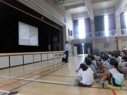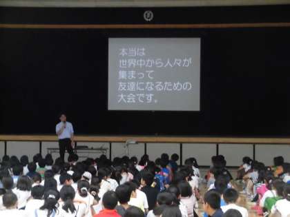 東京五輪開催まで、あと757日。今日は東海大学の松浪稔教授にゲストティーチャーとして来ていただき、「オリンピックとは?」というお話を聞きました。競技者だけでなく、オリンピックを開催するにあたって支援している人の存在に注目したお話や、オリンピックには世界の人々がつながり、交流を深める目的があるというお話を聞き、子どもたちも大変勉強になったようです。