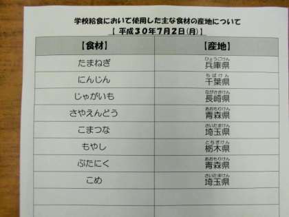 今日は、ゆかりごはん、牛乳、肉じゃがうま煮、野菜のからし醤油かけです。
