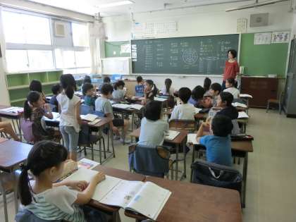 梅雨が一気に明け、真夏がやってきました。暑くて集中しにくい状況ですが、子どもたちは頑張っています。2年生は先日行ってきた公園探検のまとめをしたり、発表をしたりしていました。たくさんの情報から、伝えたい大事な内容に整理してまとめる力、発表する力を付けようと頑張っていました。3年生の算数の授業ではたくさんの子が手を挙げて積極的に学習に参加していました。