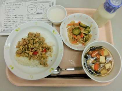 今日は、オリパラ献立ということでタイの料理ガパオライスを取り入れました。