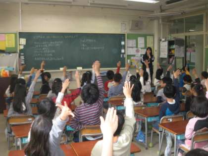 15日(月)、1年4組の授業を見ました。生活科の授業でした。幼稚園園児が学校にくるので、どのような会にするといいか話し合いました。幼児園児が喜んでもらえるように、一生懸命手を挙げてがんばっていました。