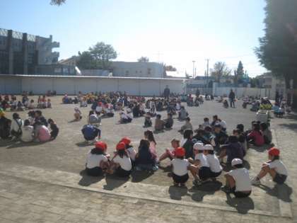 休み時間に地震が起きた時の避難訓練を行いました。その場で放送を聞いて、放送の指示どおりに動きます。休み時間なので、自分で判断して行動する必要があります。いつもより、上手くできまでんでしたが、これからがんばってほしいです。