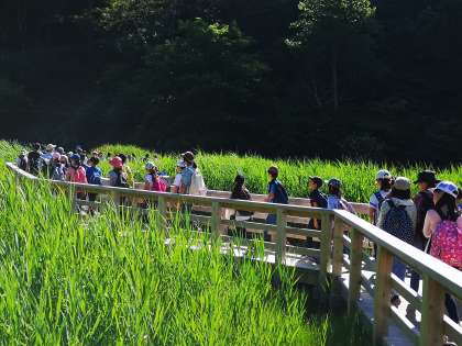 ここから宿の温泉に繋がっているなんて、不思議な感じがすると話す子どもたち。