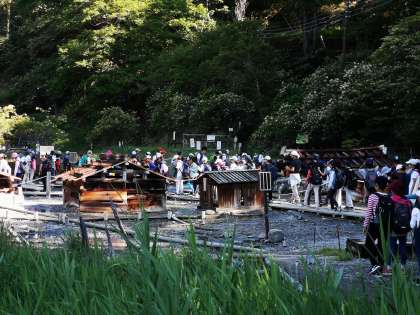 朝食を終え、源泉までのお散歩に出発です。