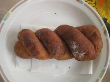 今日の給食の揚げパンは、クラスによって違っていました。3種類あります。ココア、きなこ、シナモンの味です。クラスのリクエストによるものです。一番多かったのは、ココアで19クラス、次はきなこで6クラス、シナモンは1クラスのみで、5年1組でした。お子様に何味だったか聞いてみてください。