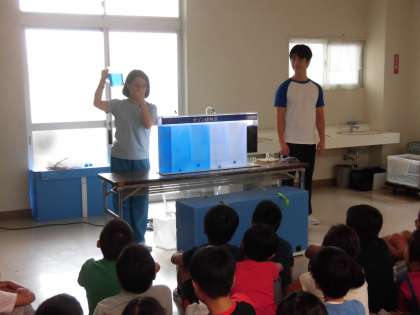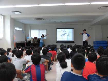 9月10日(月)に社会科「くらしと水」の学習の一環で「水道キャラバン」出張授業が行われました。普段自分たちが使っている水道水がどのようにして蛇口に届いているのかをキャラバン隊のお二人と冒険しながら学習しました。泥を固める方法や濾過の方法を実際に実験し、浄水場の仕事を体験することができました。さらに学習を進め、新聞にまとめる予定です。
