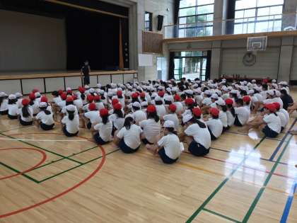2学期が始まりもう2週間が経ちました。どの学年も運動会練習をがんばっています。6年生も最高学年として一所懸命練習中です。けがをしないよう、安全指導もしっかりと。