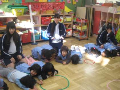 4月から月1回、芦花高校の生徒と交流してきました。12月の今日が最後の日です。芦花高校の生徒は、自分たちで考えたことをやって見せてくれました。園児たちは大喜び。でも、今日が最後。共に感謝の気持ちを込めて、涙を流しながらお別れしました。