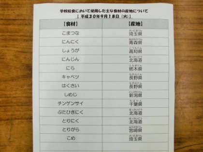 9/18 今日の給食
