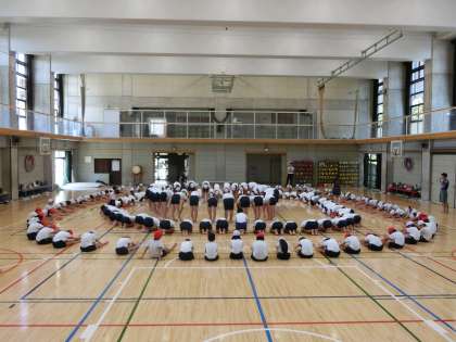 塚戸小学校の運動会まであと2週間と少しとなりました。それぞれの学年が毎日少しずつ練習を積み重ねています。6年生にとって小学校最後の運動会。そこで見せる表現運動は思い入れが違います。今年のテーマは「生きる〜手をとり合って〜」6年生184人全員で、命、自立、共生を表現します。今日の練習はウエーブの練習。手をとり合ってタイミングを合わせ生き物が息づく様子を表現する練習をしました。練習の最後には実行委員の子たちが、6年生のスローガンを発表していました。「平成最後の運動会!!ベストをつくし、最高の思い出を作り上げよう」です。文字通り、最高の姿を披露し、最高の思い出になるように、これから練習を重ね、もっともっと完成度を高めていきます。